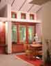 View from the study showing portions of the built-in bookcase and desk. Study views through entry towards open greatroom. |