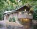 A contemporary bungalow style exterior that uses mixed materials and textures to blend into a heavily wooded site. The large cantilevered deck and two story bay with copper flashed arbor and small picture framed window were designed to be the primary visual elements of the garage wall. |