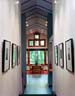 The gallery provides the transition between the private side of the house, bedrooms and study, and the open entertainment areas. The dining room is seen at center background with the wood ceiling battens drawing your eye to the clerestory windows above the soffit. |