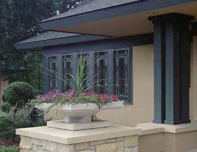 Private Residence, Eau Claire, WI Project Description Photos The exterior blends elements of Prairie School and Arts and Crafts architecture by mixing both horizontal and vertical lines with the use of limestone, stucco and art glass casement windows. |