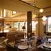 The dining room is open to the great room and the sweeping views beyond, while interior columns and soffit help to denote the space. |