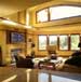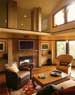 The richly detailed fireplace with its faux painted flanking piers and granite surround, give the great room an interesting focal point. The see through fireplace and glass panels above, add to the homes spacious feel. |