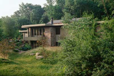 Private Residence, Minnetonka, MN Project Description Photos View from north of front yard with apple orchard and rolling berms planted in fescue. This home was designed to fit into a site and existing neighborhood. Existing vegetation in the foreground was preserved to provide screening to the street. |