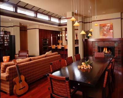 Private Residence, Minnetonka, MN Project Description Photos View from dining area with see through fireplace to breakfast room beyond. The color of the dining table was re-used as the accent color in the design of the bed and end tables (see photo 10). |