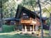 This design was prepared as part of a compound that included a main house and a boathouse. The main floor features an open plan with a vaulted ceiling of exposed timbers, two bedrooms, and a deck. The upper level is a loft overlooking the main floor. The exterior was designed with native stone and white cedar shingles. |